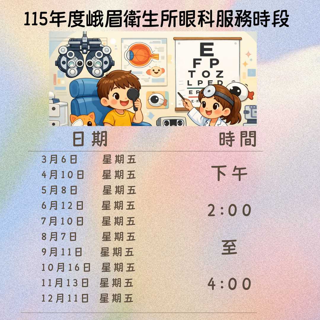 峨眉衛生所115年度眼科服務時段表